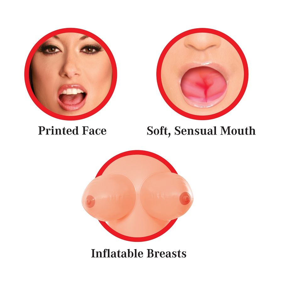 Esta increíble muñeca de tamaño natural inflable, fue meticulosamente diseñada con características realistas para una experiencia verdaderamente realista. Su atractivo rostro 3-D moldeado, se remata con una lujosa cabellera que está deseando ser retirada. Con sus pechos turgentes podrás disfrutar de sus pezones super suaves y reales. Su vagina y culo apretado y muy realista