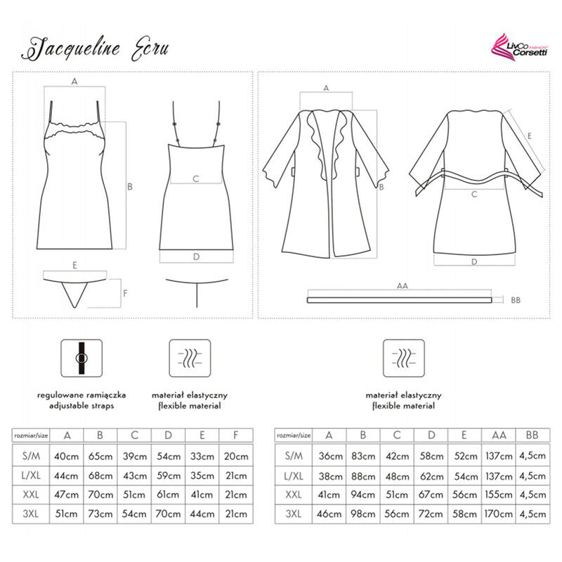 LIVCO CORSETTI FASHION - JACQUELINE LC 90249 BATA + CAMISA + PANTY CRUDO L/XL